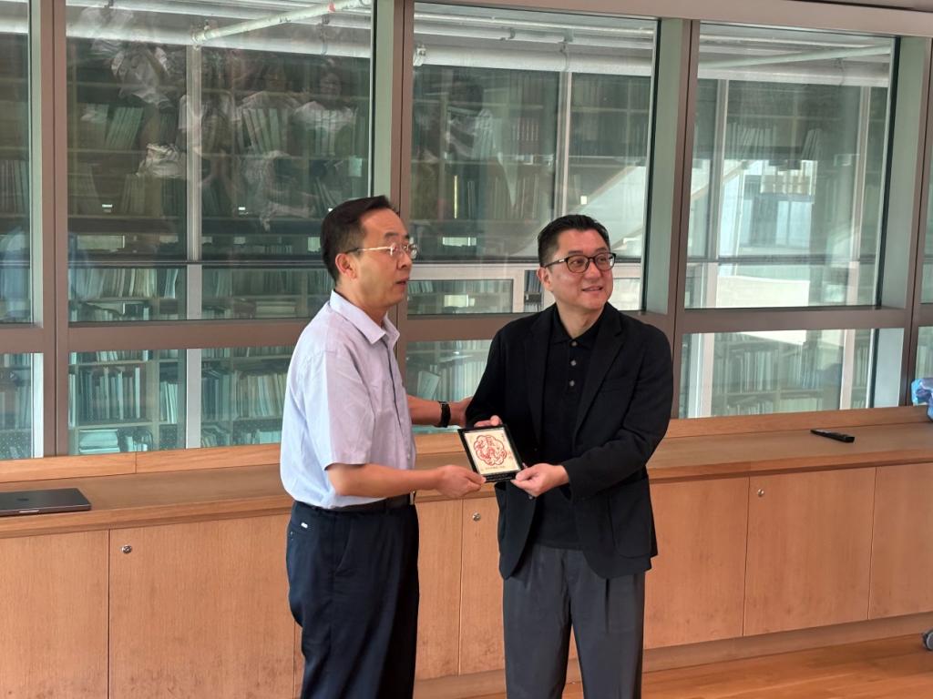 白秦川向Daniel Mei赠送了我校师生原创制作的非遗剪纸礼物。