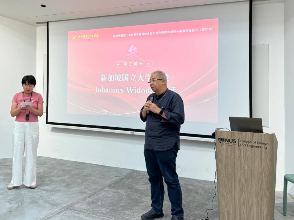 结业证书铭成果。Johannes Widodo与Catherine Loke代表新加坡国立大学向研修班成员颁发了结业证书。这份证书不仅是对老师们学习经历的见证与铭刻,更是对大家学习成效的认可与肯定。