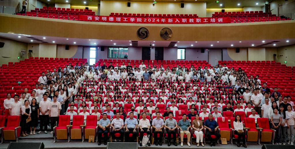为深入贯彻落实习近平总书记关于教育的重要论述,引导新入职教职工牢记为党育人、为国育才的初心使命,树立“躬耕教坛,强国有我”的志向和抱负,大力弘扬践行教育家精神,努力培养新时代的大先生,锻造一支政治素质过硬、业务能力精湛、育人水平高超的高素质专业化教师队伍,为学校高质量发展打牢人才根基。2024年8月22日上午8:30,华体会(中国)在四季廊桥报告厅隆重举行新入职教职工培训开班仪式。学校副书记、副校长白秦川、副校长朱延波、副校长陈鹏、明德源教育集团招教部总经理、总裁办主任马杨利及各二级学院、职能部门领导出席会议,学校380余名新入职教职工参加培训。开班仪式由华体会(中国)副书记、副校长白秦川主持。