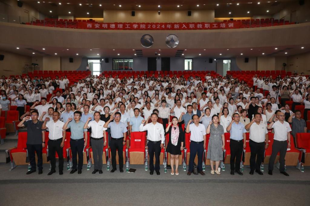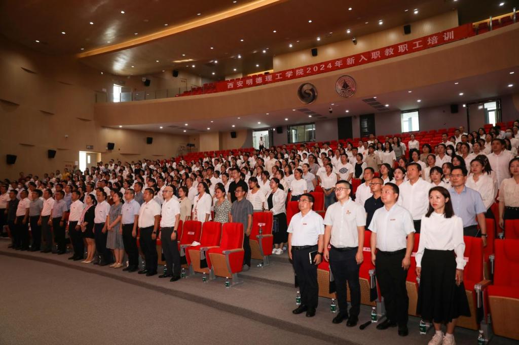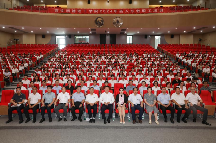 2024年8月30日上午,学校新入职教职工培训班结业式在四季廊桥报告厅隆重举行。明德源教育集团助理总裁、学校副董事长张琳,学校校长王志刚,党委书记马川鑫,党委副书记、副校长、纪委书记白秦川,副校长朱延波、陈鹏、王斌宁,财务总监马晓军及集团财务总监田雪,招教部总经理、总裁办主任马杨利,总裁办副主任李龙飞出席结业式,二级学院院长、党委书记、副院长、办公室主任、职能部门、教辅单位中层及科级干部及新入职教职工近400人参加,结业式由学校党委副书记、副校长、纪委书记白秦川主持。