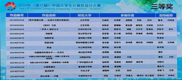 经过两天紧张激烈的比赛和精彩的答辩,在组长金泳鑫,组员张泽力、徐培硕、麻欣怡、孙婧苑,以及指导老师战涛和杜牧峰的共同努力下,他们的纪录片作品《珠盘流韵》在数媒动漫与短篇赛道纪录片普通组中荣获第17届中国计算机设计大赛全国三等奖。