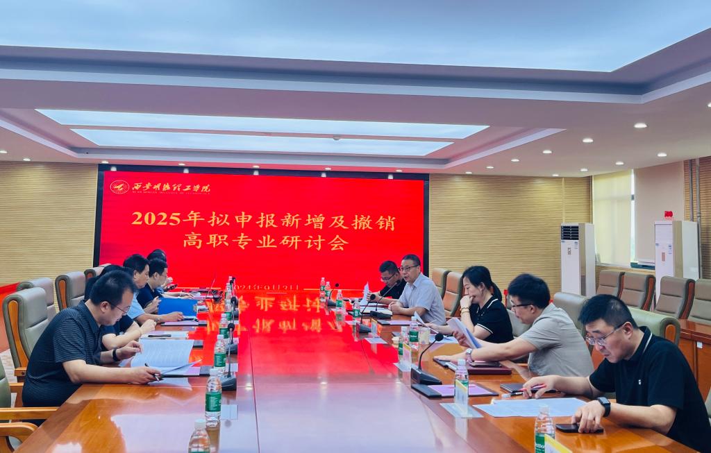 为进一步优化我校高职专业结构布局,切实做好2025年高职新专业申报工作,9月3日下午,学校在明志楼518会议室再次召开2025年高职新专业申报研讨会。明德源教育集团相关领导、副校长朱延波、刘星出席会议,教务处、招生就业中心、高等职业技术学院等部门负责人参加了会议。会议由副校长朱延波主持。