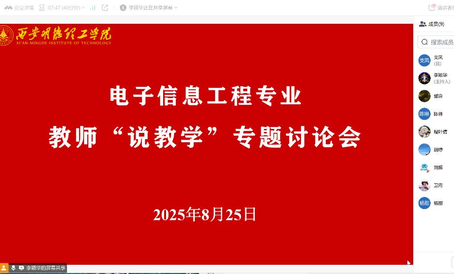为深入落实《华体会(中国)信息工程学院本科教学合格评估教师座谈会实施方案》要求,进一步强化专业教师对教学评建工作的认知,全面提升“说教学”质量,充分展现电子信息工程专业的教学成效与教师素养,2025年8月,本专业组织全体教师开展了“以‘说教学’展风采,以评建促提升——聚焦教学履职与质量改进”为主题的“说教学”系列活动。专业负责人李颖华、资深教师卫霞全程统筹主持,确保活动有序推进、取得实效。