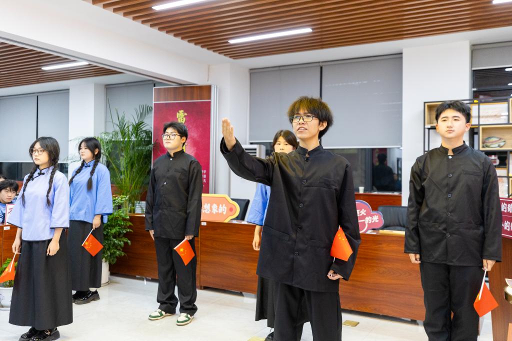 6名信工学子在观看该剧后,有感而发创作的《觉醒》朗诵表演震撼全场。他们以激昂的声调、真挚的情感,颂出时代强音,声声誓词、阵阵呼喊,瞬间将师生带回风云激荡的觉醒年代,令众人深切体悟先辈热血豪情,传承红色基因的使命感油然而生。
