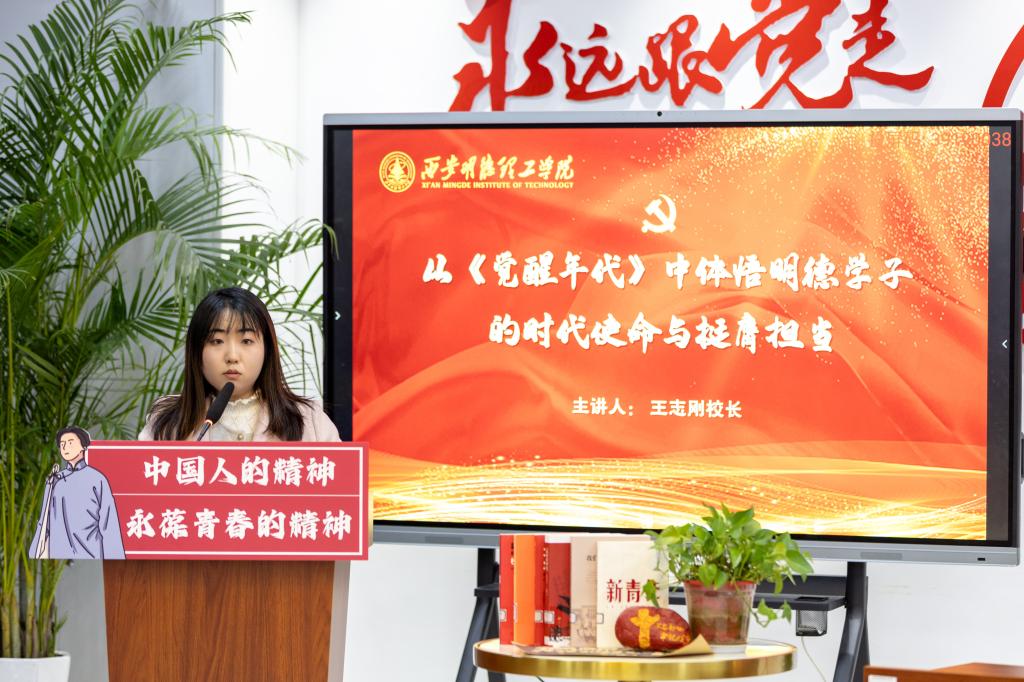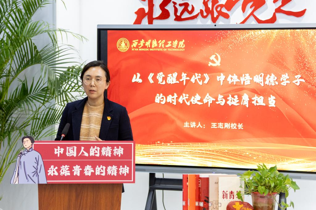 王校长在授课中勉励明德学子继承和弘扬革命先驱、老一辈革命家忧国忧民的爱国精神。学习他们坚定的理想信念和坚守初心使命的历史担当,从我们党的百年辉煌历史中汲取智慧和力量,在学思践悟中树立正确的世界观、人生观和价值观。秉承“明德、亲民、至善”校训,精心打造“学在明德”学风建设品牌,学以立志、学以立德、学以致用,学以报国。校长的授课深入浅出、旁征博引,不仅让同学们对《觉醒年代》这部优秀作品有了更深刻的理解,更让同学们明白了作为青年一代,肩上的责任与担当,感受到了那份对历史的敬畏,对未来的憧憬,以及对明德学子的殷切期望。