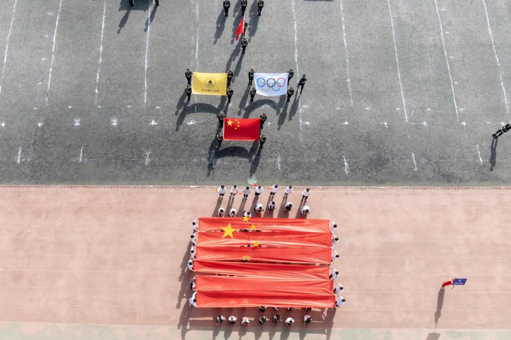 开幕式上,学院的方阵成为全场焦点,我院学子组成的数字红旗方阵格外引人注目。红旗作为革命精神的象征,代表着学院对红色文化的传承与发扬,二者结合,体现了学院将红色基因融入专业发展的决心与探索。