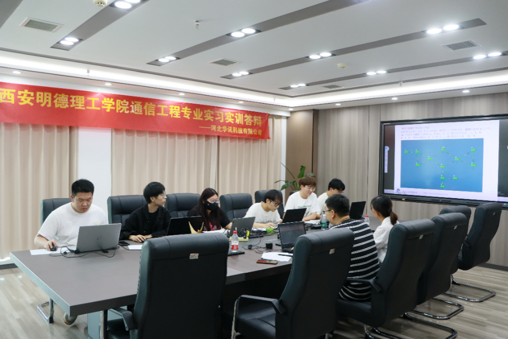 9月13日下午,河北华讯科技有限公司精心组织了一场实习答辩活动。学生们齐聚公司会议室,就自己的学习成果进行汇报,企业导师对每位学生的表现进行了严格的评审和提问,整个答辩过程既是对实习生综合能力的一次重要考核,也是他们展示自我、交流学习的平台。通过这次答辩,学生们不仅有机会反思和总结自己的实习经历,也为他们未来的职业生涯积累了宝贵的经验。