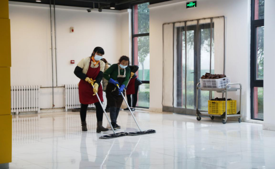 沣河苑餐厅正在打扫卫生