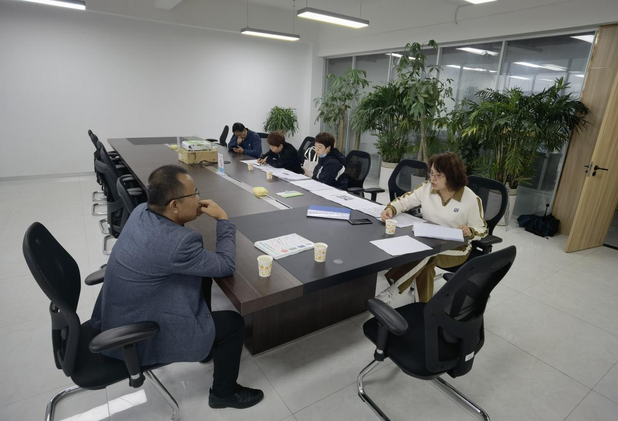 检查组带队领导王省蔷仔细查看了我校生活垃圾分类资料,内容包括:组织架构、实施方案、垃圾分类台账、垃圾清运合同、自查整改报告、会议记录、培训记录及相关活动报道等,并实地考察垃圾清运现场及有害垃圾和可回收物暂存点。