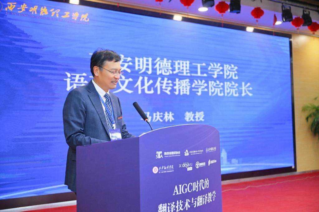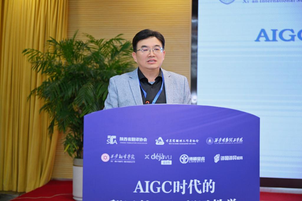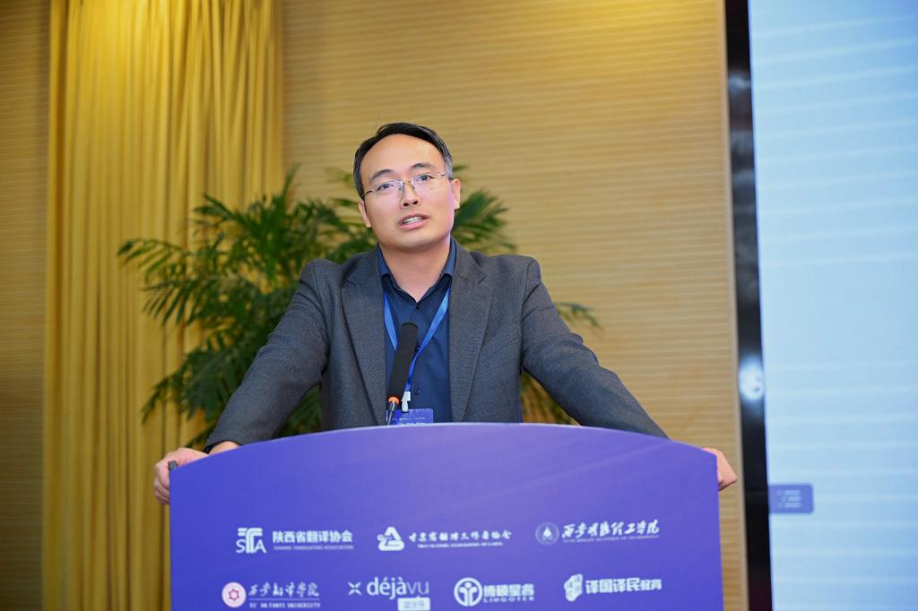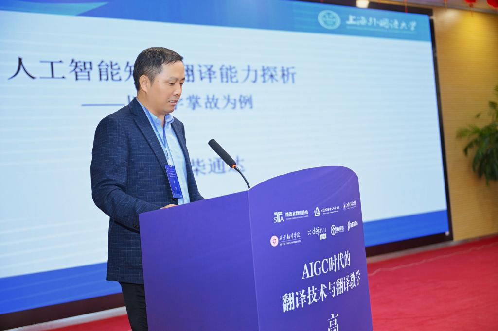 韩子满发言主题为“人工智能知识翻译能力探析——以文学掌故为例”。他通过分析文学掌故的翻译案例,展示了AIGC技术在处理复杂语境和文化差异方面的能力。他强调了在翻译教学中融入人工智能知识的重要性,并提出了一些创新的教学方法,如利用AIGC技术进行翻译实践模拟和文化背景分析。