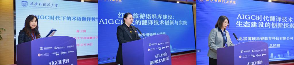 宁静在题为“AIGC时代翻译技术教学模式实践”,介绍了在AIGC技术影响下,翻译技术教学模式的变化,以及如何利用这些技术提高教学质量和学生的学习体验。她还分享了一些成功的教学案例,如通过在线平台进行实时翻译练习和反馈,以及利用AIGC技术进行个性化学习路径的设计。