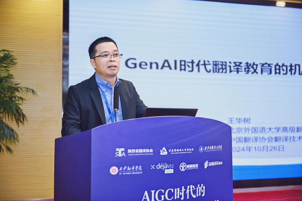 王华树发言主题为“GenAI时代翻译教育的机遇、挑战与应对”。他深入分析了AIGC技术为翻译教育带来的新机遇,包括提高翻译效率、丰富教学资源和促进个性化学习等。他在指出翻译技术对传统翻译技能的影响、对翻译质量控制的难度增加,以及对翻译教师角色的重新定义的同时,提出了一系列应对策略,包括加强技术培训、更新课程内容和强化学生的批判性思维能力。