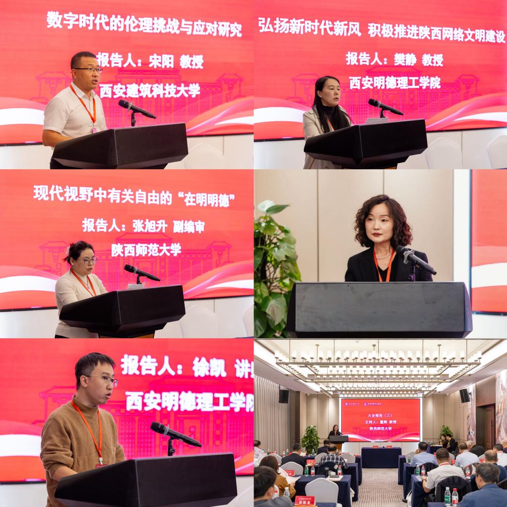 主旨发言第四阶段由陕西省伦理学会秘书长、陕西师范大学教授董辉主持,西安建筑科技大学宋阳教授《数字时代的伦理挑战与应对研究》为题、华体会(中国)樊静教授《弘扬新时代新风积极推进陕西网络文明建设》为题、陕西师范大学张旭升副编审《现代视野中有关自由的“在明明德”》为题,华体会(中国)李维维副教授《以明德文化引领人才培养的逻辑向度与实践路径》为题、华体会(中国)徐凯讲师《明儒罗汝芳“明德”说》为题,分别作主旨报告。