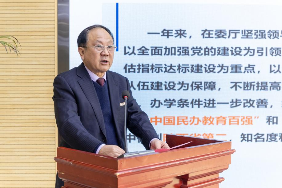 王志刚校长从“坚持党建引领,保障教育事业健康发展;坚持质量立校,教育教学质量不断提升;坚持人才强校,师资队伍结构进一步优化;坚持改革兴校,持续推动内涵建设提升;坚持特色名校,着力打造办学特色品牌;坚持依法治校,筑牢高质量转型发展根基;坚持规范办学,促进学校健康持续发展”等七个方面,汇报了学校2024年主要工作以及上一年度年检反馈问题整改情况。