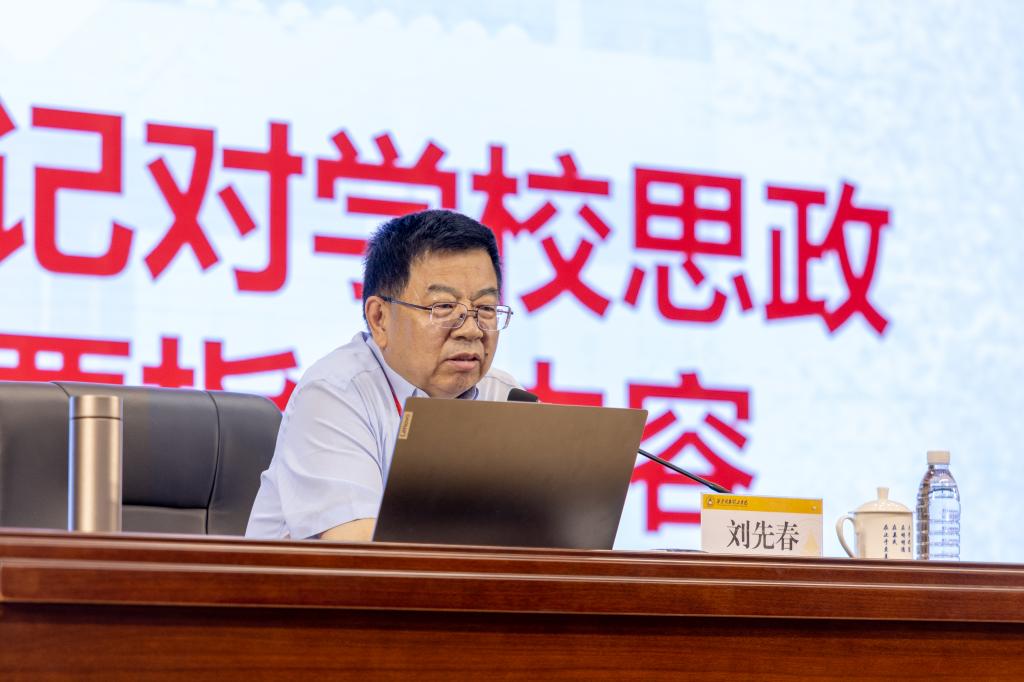 报告会上,刘先春教授以《深入学习贯彻习近平总书记对学校思政课建设重要指示精神》为主题,从习近平总书记对学校思政课建设重要指示内容、习近平总书记关于学校思政课建设的生动实践和习近平总书记关于学校思政课建设的重要论述等三个方面进行了深入讲解。他指出,习近平总书记对学校思政课建设作出的重要指示,深刻回答了学校思政课建设的指导思想、核心内涵、内容支撑、力量根基、发展方式、教师队伍等重大理论和实践问题,为新时代学校思政课建设指明了方向、提供了根本遵循。陕西民办高校必须坚持全面贯彻党的教育方针,不断推动思政课改革创新,让思政课活起来,实起来,真正成为落实立德树人根本任务,培养一代又一代拥护中国共产党领导和我国社会主义制度、立志为中国特色社会主义事业奋斗终身有用人才的主阵地。