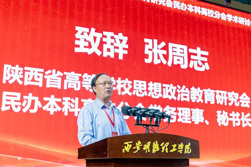 张周志受政研会民办本科高校分会雷西合会长委托,代表政研会民办本科高校分会致辞,预祝本次研讨会圆满成功。他表示,政研会民办本科高校分会要坚持政治立会,树牢思政课建设正确方向;坚持研究立会,夯实思政教育理论支撑;坚持服务立会,打造交流共享平台。各兄弟高校要同步推进,深化党的创新理论在课堂教学中的体系化表达、逻辑化呈现、学理化阐释;要守正创新,在内容设计、方法运用、资源整合等层面多维度推进思政课迭代升级;要深钻细研,深入研究重大理论问题和教学中的难点问题。