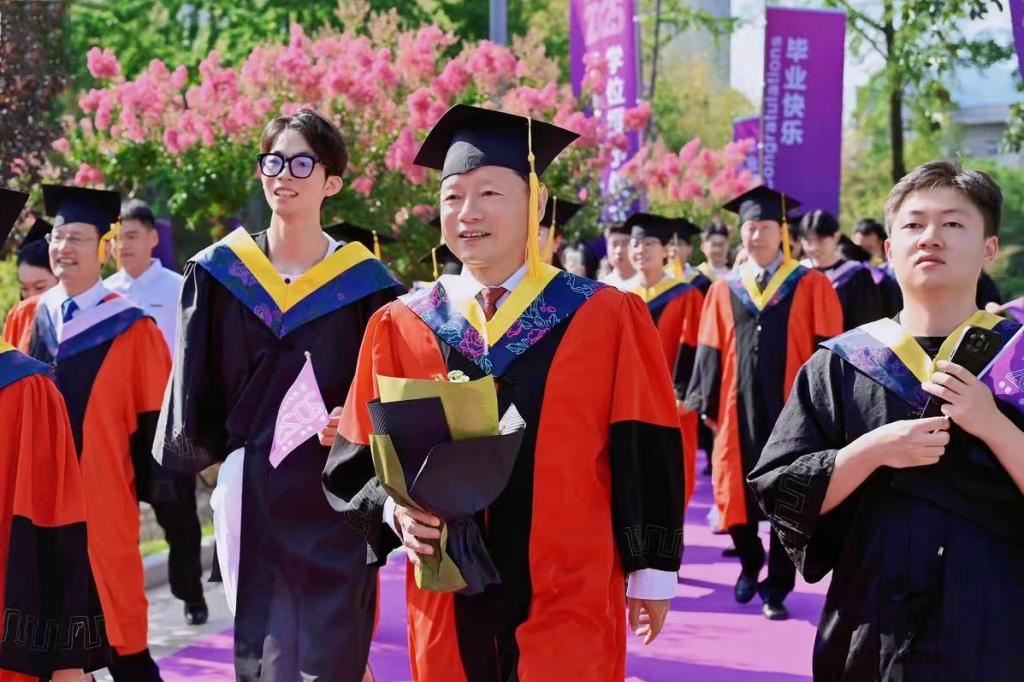 学校董事长袁汉源、校长王志刚为毕业生代表拨穗正冠、颁发学位证书