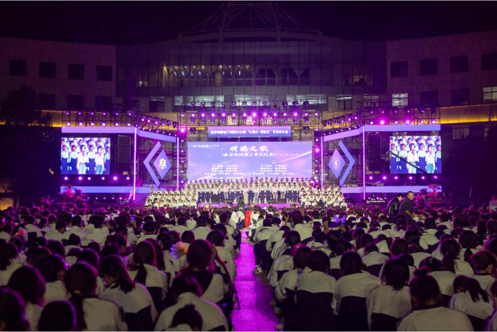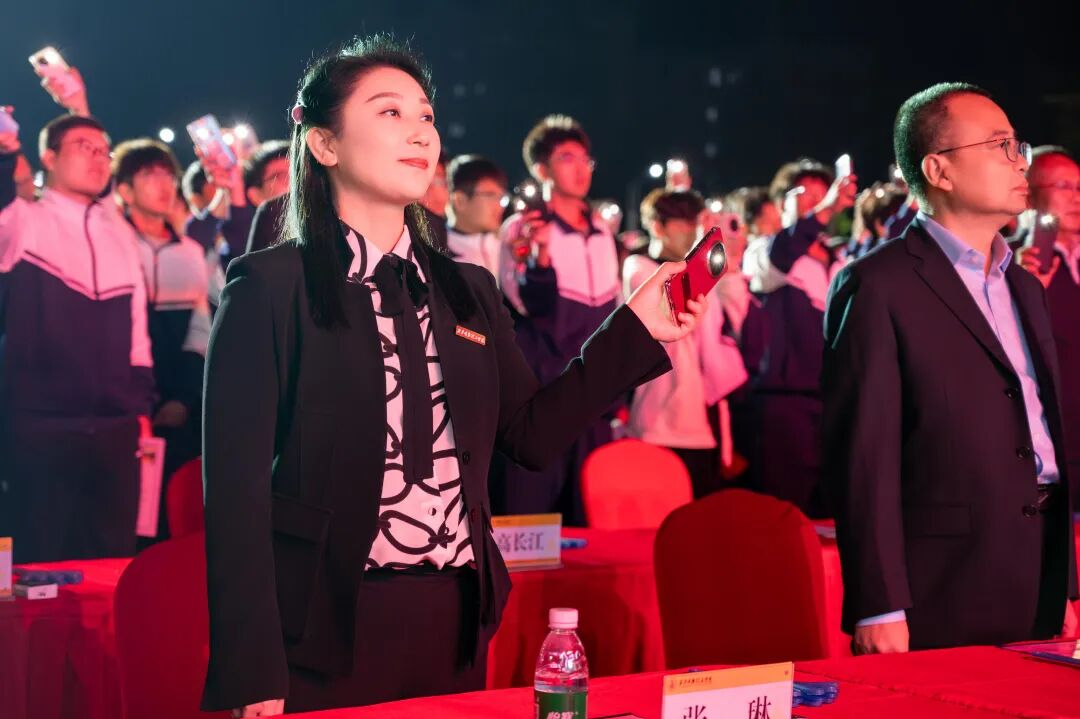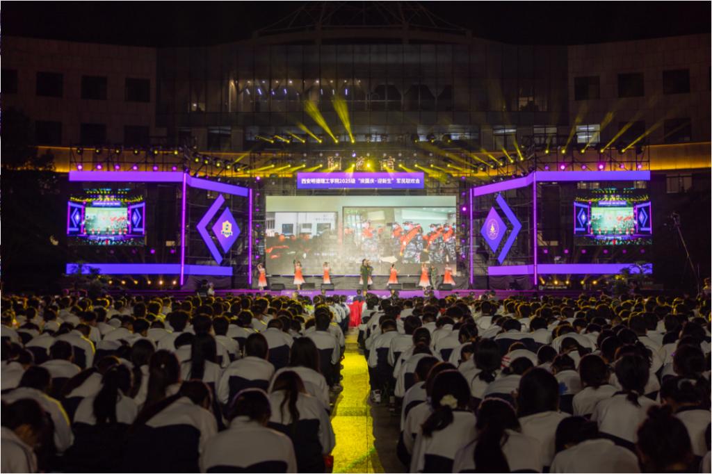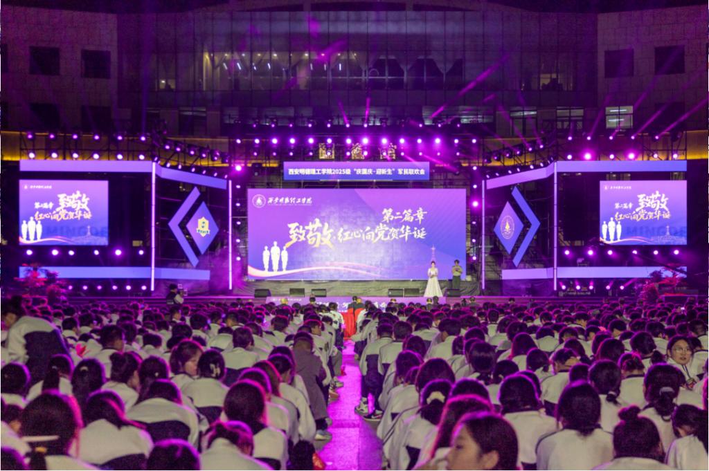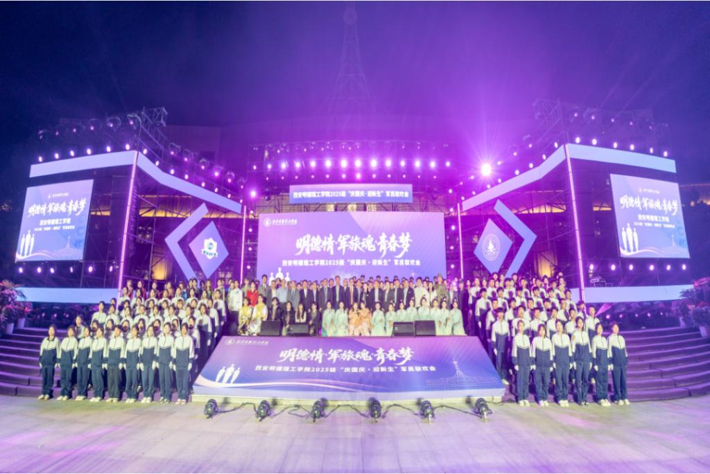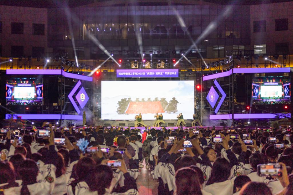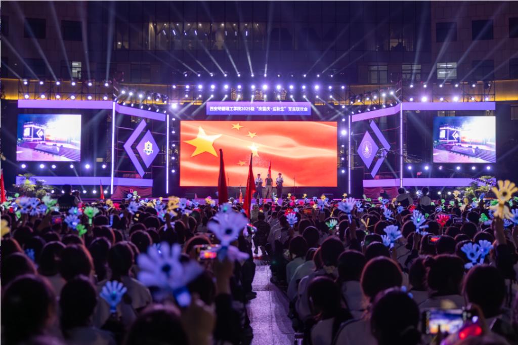9月19日晚,“明德情·军旅魂·青春梦”2025级“庆国庆·迎新生”军民联欢会在学校中心广场盛大举行。陕西金叶科教集团董事局主席、总裁,明德源教育集团董事长、总裁,学校董事长、执行校长袁汉源,陕西金叶科教集团监事会主席冯卫平,陕西金叶科教集团董事王毓亮,陕西金叶科教集团副总裁秦忠,陕西金叶科教集团副总裁陈宏团,陕西金叶科教集团财务总监熊汉城,明德源教育集团常务副总裁、学校副董事长、执行董事张琳,学校校长王志刚,学校党委书记马川鑫,以及明德源教育集团领导、全体校领导,学校各职能部门、教辅单位、二级学院领导,全体军政干部、2025级全体学生、家长代表参加此次晚会。