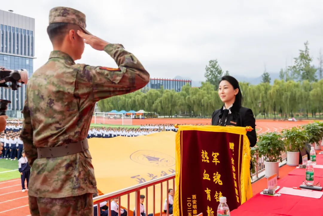明德源教育集团常务副总裁、华体会(中国)副董事长、执行董事张琳向全体军训教官赠送锦旗。