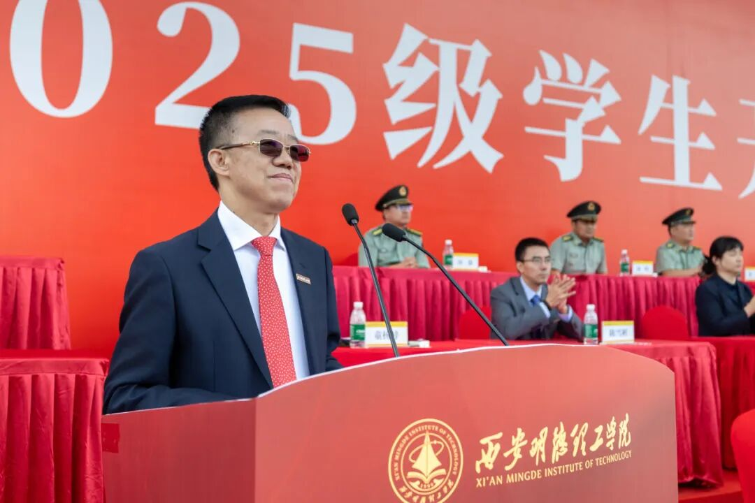 王志刚作了题为《涵养明德人精神特质,做堪当民族复兴大任的时代新人》的讲话。他首先回顾学校26年办学历史和转设五年来的发展成就,强调学校坚持“以学生为根、以育人为本、以教师为要、以责任为重”,致力于培养新时代高素质应用型人才。他向新生提出五点希望:一要秉承明德人尊道贵德的道德修为,筑牢成长的根基;二要秉承明德人自强不息的担当精神,锻造坚韧的品格;三要秉承明德人修齐治平的家国情怀,拓展人生的格局;四要秉承明德人求真务实的行事准则,练就过硬的本领;五要秉承明德人止于至善的崇高追求,闪耀卓越的人生。鼓励大家在明德理工收获知识、能力和友谊,成长为无愧于时代的栋梁之才。