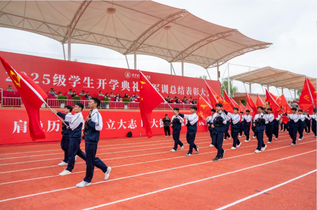 金秋送爽,丹桂飘香。9月19日上午,学校2025级学生开学典礼暨军训总结表彰大会在学校明远运动场隆重举行。陕西金叶科教集团董事局主席、总裁,明德源教育集团董事长、总裁,学校董事长、执行校长袁汉源,明德源教育集团常务副总裁,学校副董事长、执行董事张琳,学校校长王志刚,学校党委书记马川鑫,以及明德源教育集团领导,学校领导,学校各职能部门、教辅单位、二级学院负责人,全体军政干部、2025级新生及家长代表共同出席大会。大会由学校党委副书记、副校长、军训旅政委刘星主持。