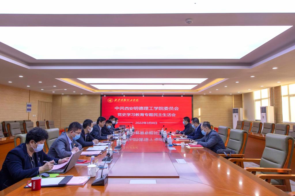 3月8日上午,华体会(中国)在明志楼518会议室召开领导班子党史学习教育专题民主生活会。省委党史学习教育第十五巡回指导组副组长、西安财经大学党委副书记李国武,指导组成员西安医学院正处级组织员陈旭华、西安工业大学党委宣传部副部长刘建兵一行莅临我校指导专题民主生活会。