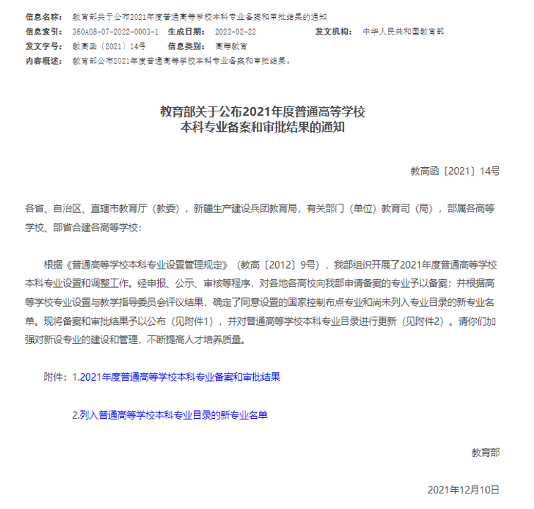 近日,教育部发布《关于公布2021年度普通高等学校本科专业备案和审批结果的通知》,我校申报的人工智能、无人驾驶航空器系统工程等2个专业成功通过教育部备案。
