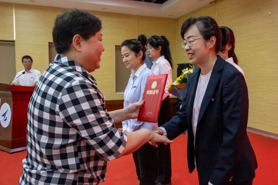 校领导为获得省级和校级的先进个人颁发了荣誉证书。