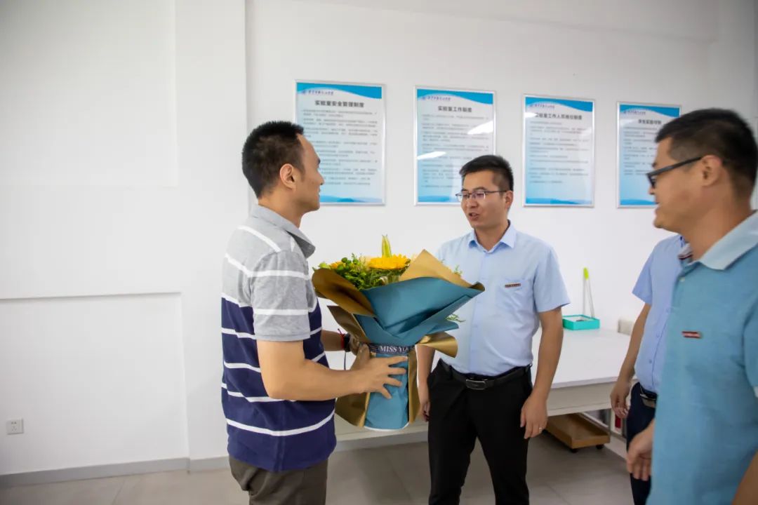 当天下午,副校长庾鲜海、刘星代表学校党政班子看望了陕西省师德标兵刘勇教授、陕西高校青年创新团队负责人赵盼博士,为他们送上鲜花和节日的祝福,详细了解他们的教学科研、学习生活等情况,对他们取得的成绩表示祝贺和肯定。同时认真倾听了老师们对学校各项工作的意见建议,并与大家交流探讨。老师们表示感谢学校的关心,要立足本职,努力工作,为学校转型发展做出新的更大贡献。