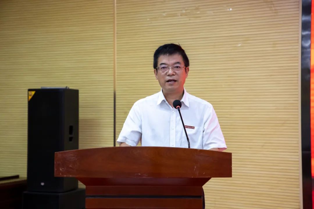 校长杨健君作了题为《以评促建 创新发展 扎实推进高质量应用型人才培养体系建设》的主题报告。他代表学校党政班子向全校教职工致以节日的诚挚问候和崇高敬意!向受表彰的先进个人表示热烈祝贺!同时,对教育科技集团、袁汉源董事长对广大教职工的慰问关心表示衷心感谢!他首先对上半年及暑期工作作了回顾和总结,同时分析了当前学校面临的主要形势。他指出,今年是学校实施“十四五”教育事业发展规划关键之年,也是本科教学工作合格评估建设的关键时期,围绕下半年重点工作,就是要贯穿本科合格评估一条主线,理顺两个管理体制机制、召开三个重要会议、落实四项重点工作任务。