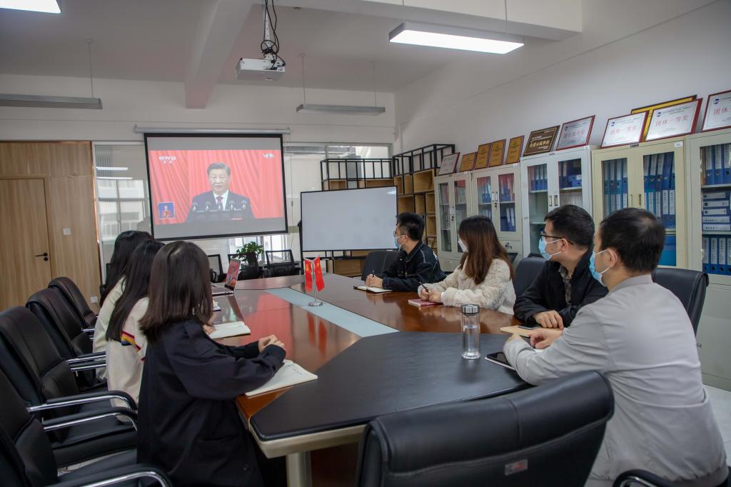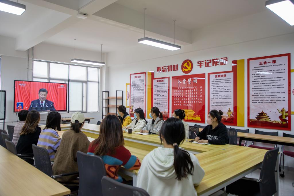 学校根据新冠肺炎疫情形势和防控要求,采取集中与分散相结合、线上与线下相结合的方式认真组织收听收看。学校领导、党委委员、机关党员代表等在学校建德楼202报告厅收看;两校区在校教职工、辅导员、学生党员代表等分散在各二级学院会议室收看;全校师生党员、入党积极分子、民主党派人士、师生群众等通过线上平台收听收看。马克思主义学院组织全体思政课教师集中在线收看。