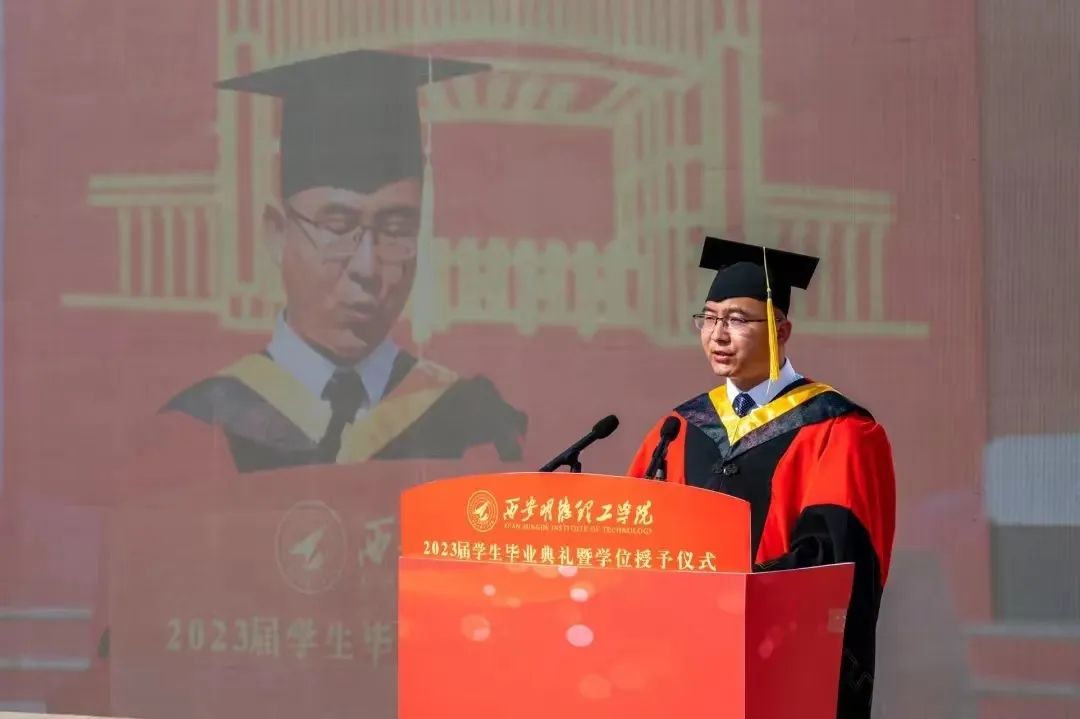 校友代表,我校2015级校友,西北工业大学博士生陈俊宇分享了个人成长经历,勉励同学们将大学的美好回忆永存心间,将母校的爱和温暖永存心间,用拼搏和奋斗开启新征程,为母校增添光彩。