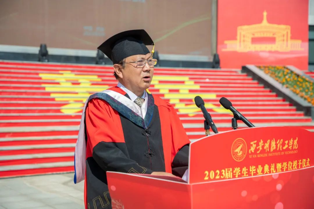 刘星副校长宣读《关于表彰2023届陕西高校优秀毕业生和优秀学生干部的通报》《关于表彰2023届优秀毕业生的决定》。袁汉源董事长为2023届优秀学生颁发荣誉证书。