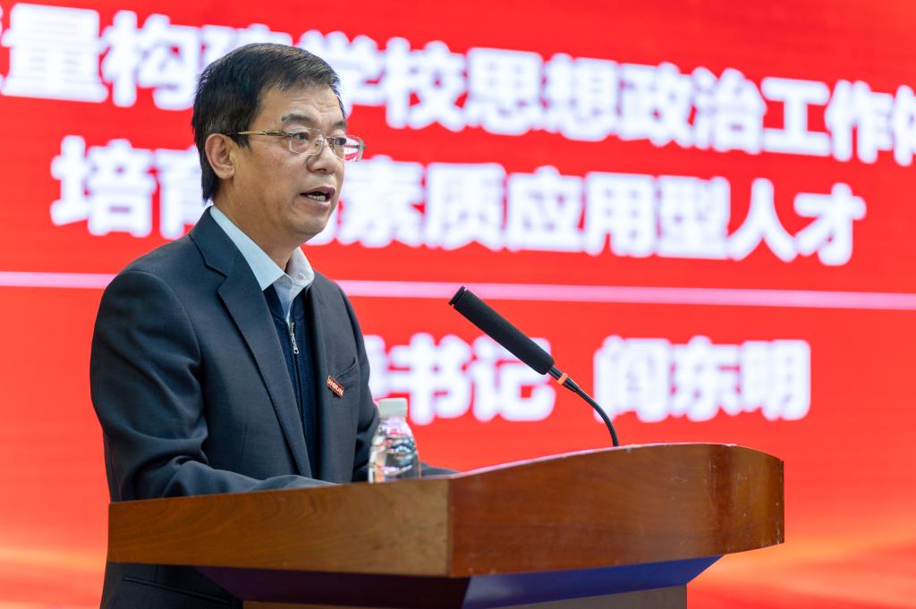 校党委书记阎东明以“健全完善学校思想政治工作体系,培育高素质应用型人才”为主题,深刻阐述了加快构建高质量思想政治工作体系对于贯彻落实新时代党对高校思想政治工作新要求、培养德智体美劳全面发展的社会主义建设者和接班人、推动学校高质量转型发展的重要意义,分析了学校当前思想政治工作面临的新形势新任务新挑战,提出了进一步做好学校思政工作、健全和完善学校思政工作体系、构建“大思政”工作格局的基本思路、重点举措。