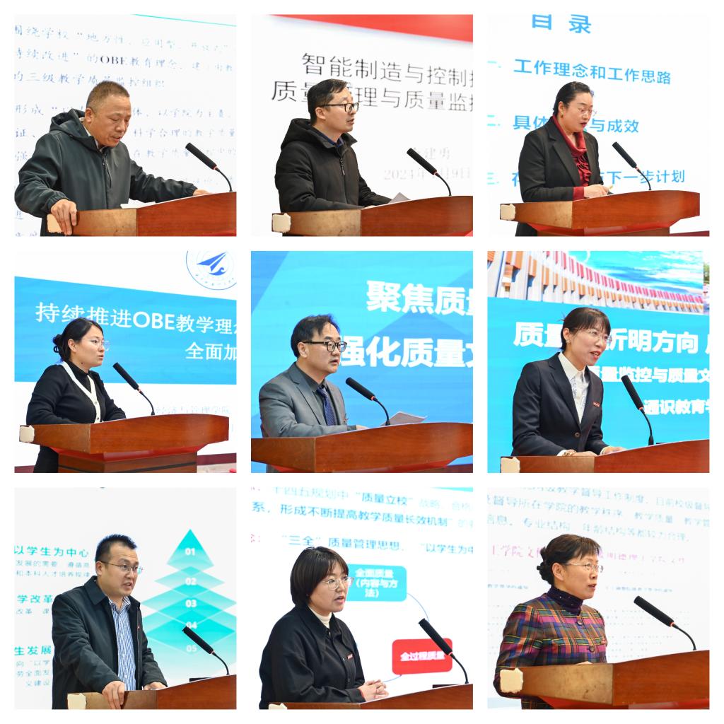 信息工程学院、智能制造与控制技术学院、语言文化传播学院、经济与管理学院、艺术与设计学院、通识教育学院分别做了工作汇报。各学院紧扣主题,从质量管理的理念与工作思路、质量监控工作的具体做法与存在问题、下一步的计划等三个方面,详细介绍了各自在质量管理方面的实际情况。二级学院的汇报,总结了经验,分析了问题,起到了很好的示范作用。