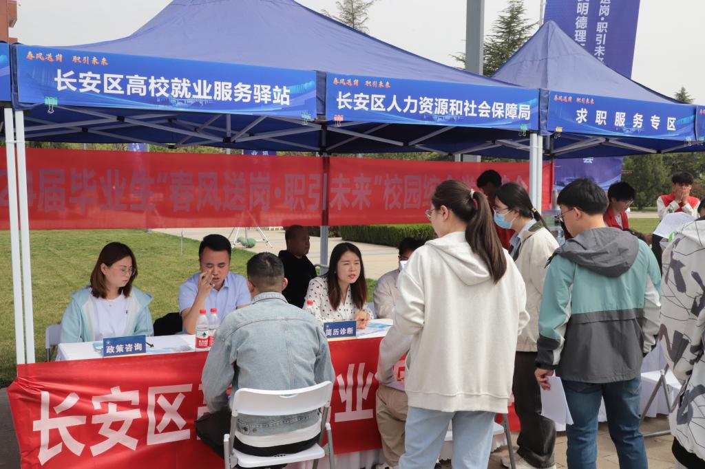 4月9日上午,我校联合地方人社局在长安校区中心广场成功举办2024届毕业生“春风送岗职引未来”校园综合类招聘会。学校党委书记阎东明,党委副书记、副校长刘星、长安区人力资源和社会保障局人才服务中心刘峰主任、雁塔区人力资源和社会保障局人才服务中心曹磊副主任、西安航天基地科技与创新人才服务中心主任黄冬雪莅临会场指导工作。学校招生就业中心、各学院党委(党总支)书记、辅导员及2024届毕业生参加了此次活动。