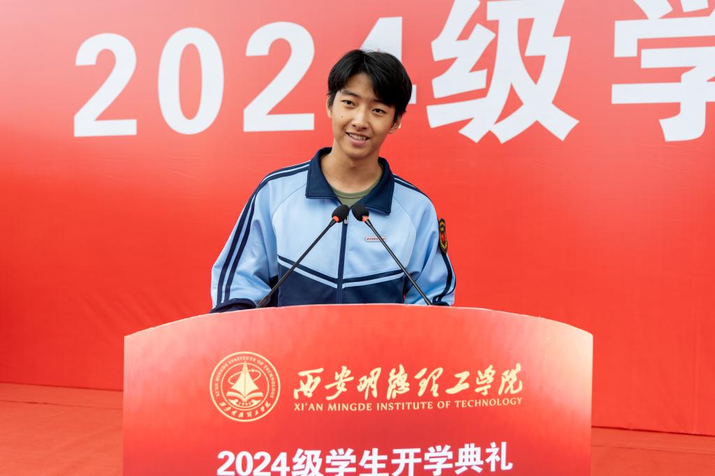 同时他对2024级全体新生提出三点建议:一是要求真务实、堪当栋梁。学生的主业就是学习知识,在学习阶段一定要把基石打深、打牢,做到求真理、悟道理、明事理,丰富学识、增长见识。珍惜在明德理工学习的大好时光,求真学问,练真本领,为争做国家和社会栋梁打好基础。二是要修养人格、高度自律。高尚的人格是一个人在社会立足的基本,坚韧不拔的毅力是成就事业的基础。希望同学们心怀感恩,善良宽厚包容;修养品行,坚韧挺拔屹立,以高度的自律精神和不断求索的态度过好美好的大学生活,不负韶华、不负时代。三是要自信自强、刚健有为。生逢伟大时代,作为明德理工的学子,要坚定不移听党话、跟党走,努力涵养天行健、君子以自强不息的精神气质,在强国建设、民族复兴伟业中,以自己的扎实学识和辛勤努力,担当重任、奋斗有为,展现新时代青年昂扬的精神风貌。
