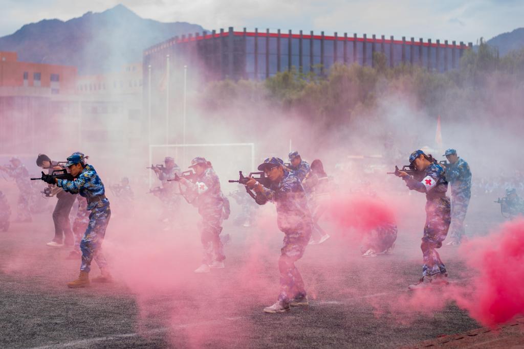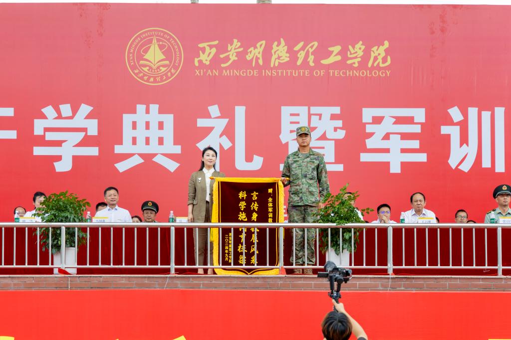 明德源教育集团助理总裁兼常务副总裁、学校副董事长张琳女士向全体军训教官赠送锦旗。
