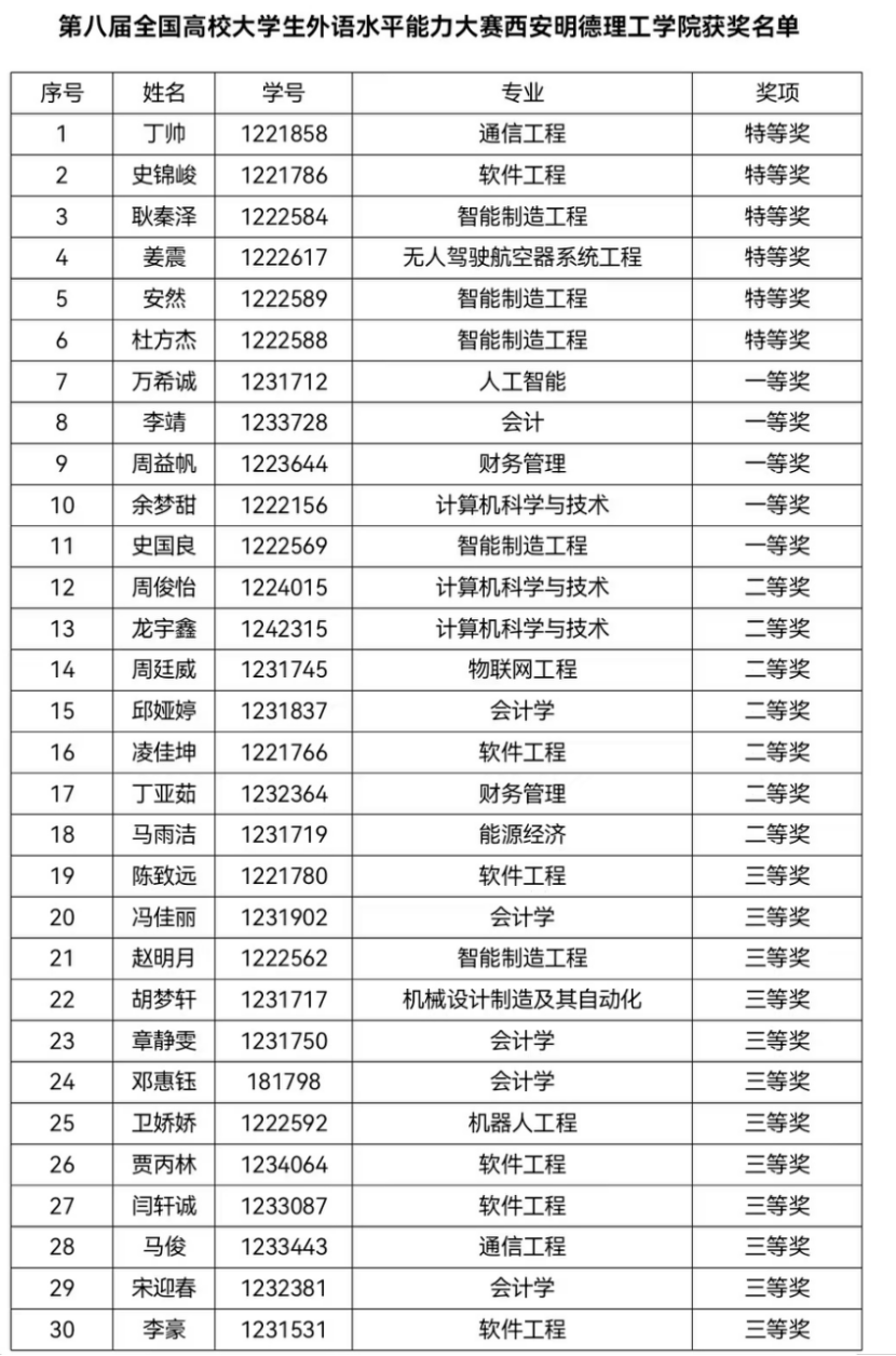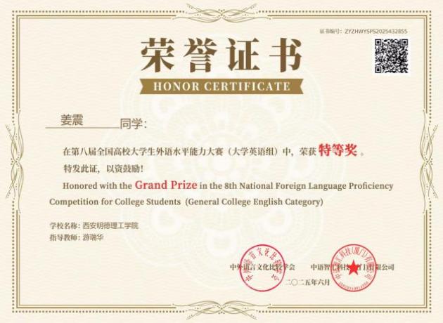 经过初赛的激烈角逐与严格选拔,我校46名学子凭借出色的英语语言能力成功晋级全国决赛。在决赛中,选手们发挥出色,最终30名优秀学子脱颖而出,斩获佳绩:其中6人荣获特等奖,5人获得一等奖,7人获得二等奖,12人获得三等奖。这一优异成绩充分展现了我校学生扎实的英语语言功底和英语语言综合应用能力,彰显了我校大学英语教学的显著成果。