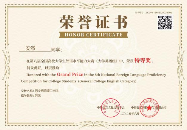 由中外语言文化比较学会主办的第八届全国高校大学生外语水平能力大赛(大学英语组)全国决赛于2025年6月7日圆满落幕。本届大赛秉持“以赛促教、以赛促学、以赛促练”的办赛理念,全面覆盖听力理解、阅读理解、写作能力和翻译技巧等多维度能力考核,为全国大学生搭建了一个高水平的英语综合能力展示平台。我校高度重视此次赛事,精心组织动员,最终吸引228名优秀学子踊跃报名,展现出极高的参赛热情与竞技精神。