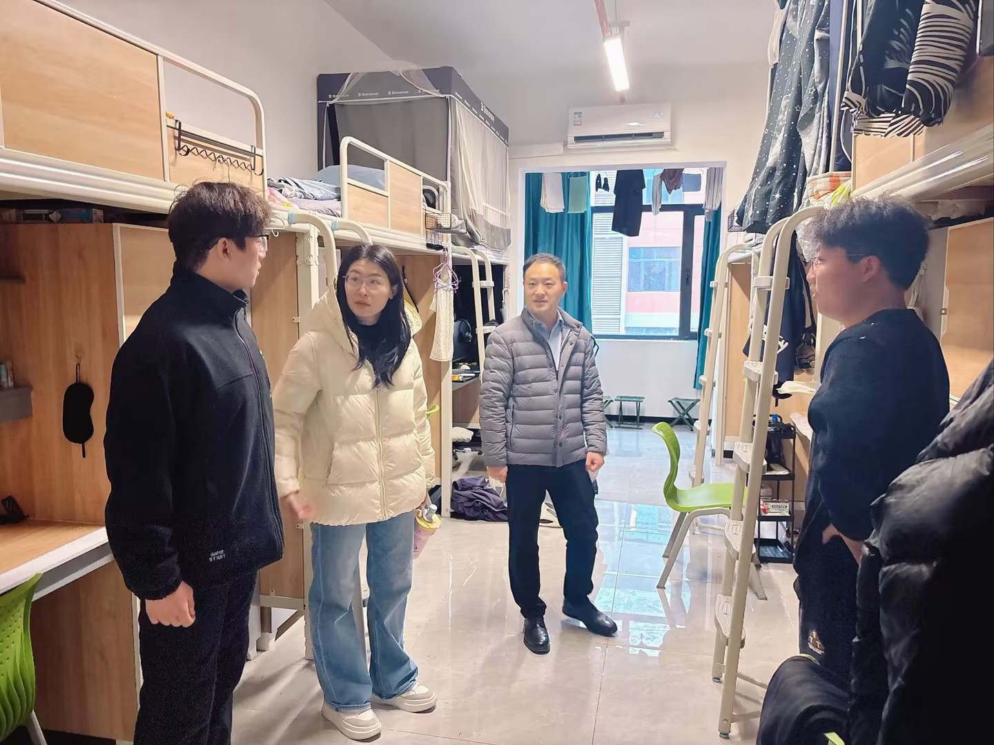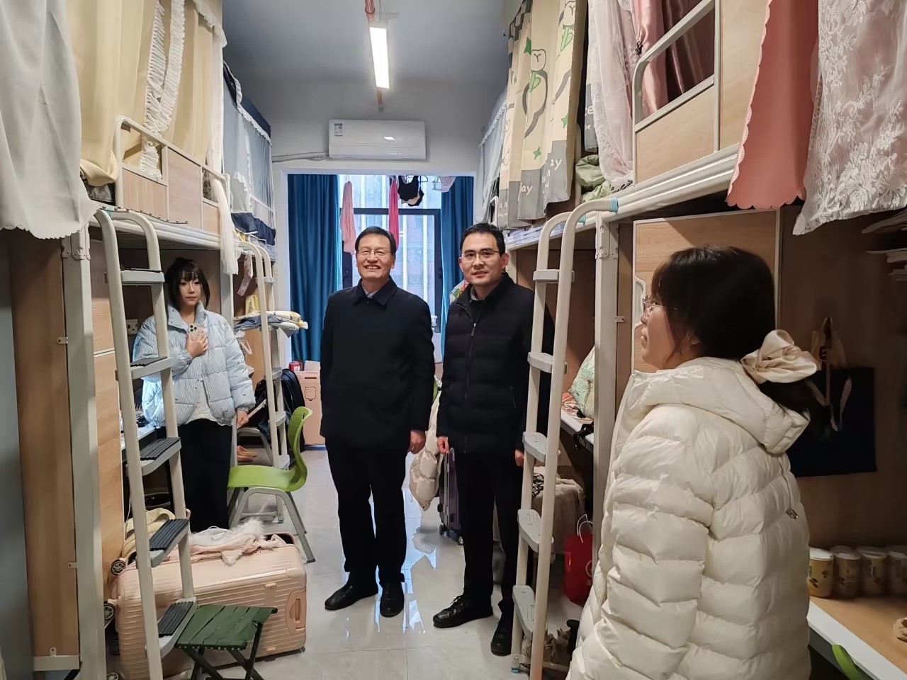 为精准掌握学生返校后的精神风貌与思想动态,扎实推进学生宿舍安全管理工作,确保新学期教育教学工作能够平稳有序地开展,3月2日党委学生工作部联合后勤管理处、智慧安全警务处组织对“一站式”学生社区进行全覆盖安全隐患联合大排查。在进宿舍时,辅导员们与同学们进行了亲切交流,了解他们的新学期计划与生活需求,鼓励他们以积极向上的心态迎接新学期的挑战。