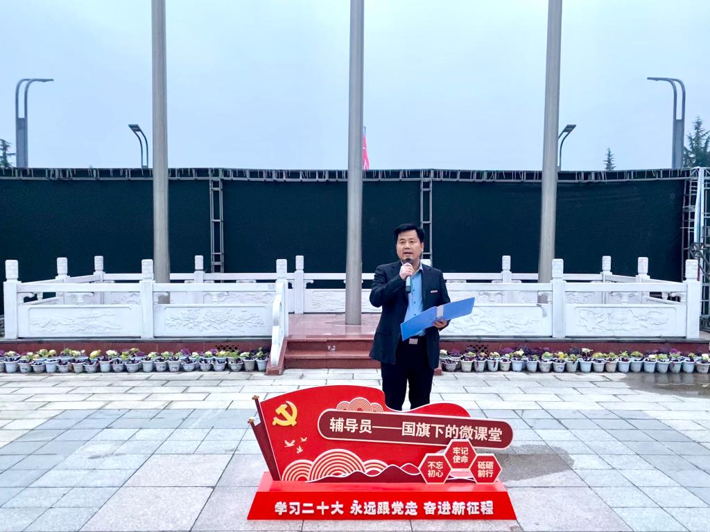 升旗仪式圆满结束后,语言文化传播学院的党委副书记杨峰老师围绕着“开学第一课”,以《新学期,新起点,共筑青春梦想》为主题,做了国旗下微课堂演讲。他号召同学们珍惜宝贵的大学时光,勤奋钻研专业知识,勇于担当时代赋予的使命,将个人的成长规划与国家的繁荣发展紧密融合,共同书写青春华章。