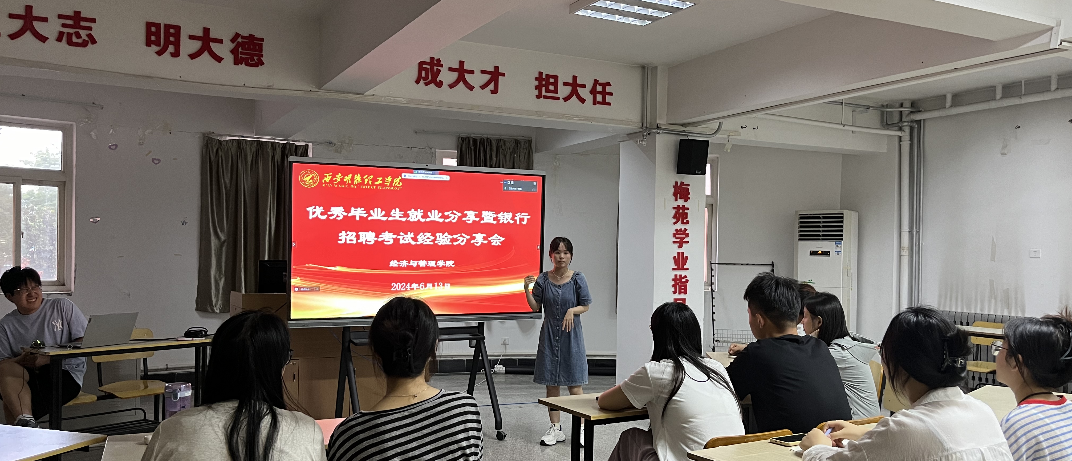 会议伊始,白丽萍分析了学院近三届毕业生就业方向和当前就业形势,鼓励同学们提前做好充分准备,树立积极的就业意识。分享环节,2024届国际经济与贸易专业毕业生蔡良烽结合自身求职经历,从求职准备、简历制作、面试技巧、签约注意事项等四个方面给学弟学妹们分享了求职经验,鼓励同学们关注招聘信息,抓住秋招、春招求职黄金季,通过企业实习,积累工作经验,实现最终就业。就业于长安银行西安分行的2023届金融学专业毕业生张晨馨分享了自身备考银行的经历,建议同学们多关注各大银行网站,收集招聘信息,有针对性地进行备考,通过模考练习提高笔试成绩,在应聘中总结经验和面试技巧,提升录取率。