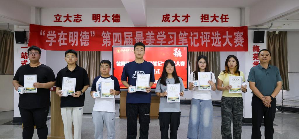 为加强学校优良学风建设,进一步打造“学在明德”学风建设品牌,营造积极浓厚的校园学习氛围,6月28日,党委学生工作部在梅苑“一站式”学生社区成功举办第四届“最美学习笔记”评选大赛颁奖仪式。党委学生工作部副部长童杨梓,语言文化传播学院党委副书记杨峰、高等职业技术学院党总支副书记王飞,党委学生工作部相关人员以及获奖学生参加了颁奖仪式。