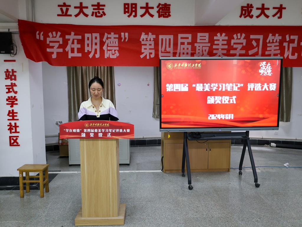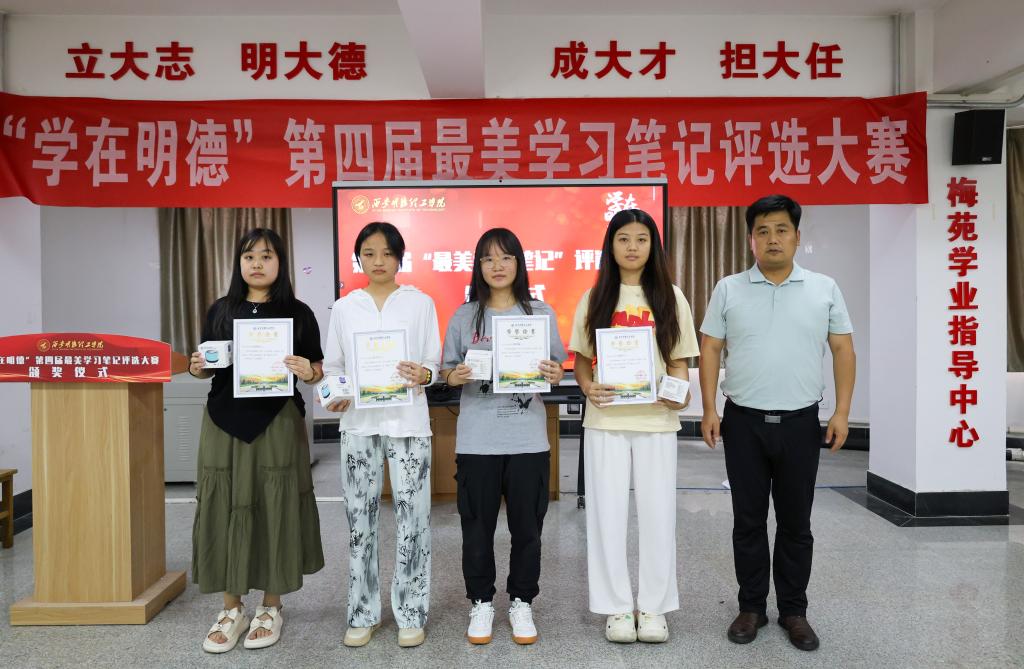 颁奖仪式上,党委学生工作部花芸对获奖同学表示衷心的祝贺,并希望同学们以记学习笔记促学习习惯,提高学习效率,保持优良学风,更好的带动身边同学共同进步。获奖学生代表信息工程学院王宣朝,跟同学们分享了自己的学习心得,每一次记录学习笔记都是他对知识的理解和构建,是对问题的思考与探索,在记笔记的过程中,也深刻体会到知识的绚烂和智慧的魅力。随后颁奖嘉宾对获奖同学颁发了荣誉证书和奖品。