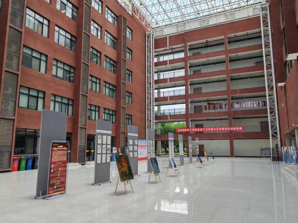 为认真贯彻落实教育部等十七部门《全面加强和改进新时代学生心理健康工作专项行动计划(2023—2025年)》《教育部办公厅关于开展首个全国学生心理健康宣传教育月活动的通知》以及陕西省教育厅等十七部门《全面加强和改进新时代陕西省学生心理健康工作专项行动计划》精神,扎实推进学校心理健康教育提升行动,引导学生有效运用不同听觉、视觉艺术材料和媒介方式,进行自我创作、自我探索和自我对话,缓解内心冲突,改进行为管理,释放心理压力,纾解不良情绪,增强自信心,进而达到改善和提升自身的生理、心理和情绪健康,塑造自尊自爱、理性平和、积极阳光的心态,学校于5月27日-31日举办了首届艺术疗愈文化节活动,并于6月17日-21日在明志楼大厅举办了首届艺术疗愈文化节系列活动成果展。本次活动由马克思主义学院、党委学生工作部、通识教育学院共同举办。