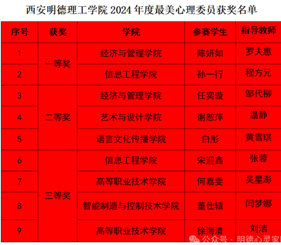 通过此次评选活动,丰富了学生的校园生活,夯实了学校心理育人工作基础,充分展现了当代大学生的活力风采。对于在学校营造关注心理健康、懂得心理健康、重视心理健康的氛围具有重要意义。最后,我们期待着华体会在线官网的同学和老师能够更加重视心理健康,重视心理教育,积极参与到心理健康教育的实践中!