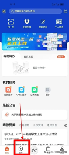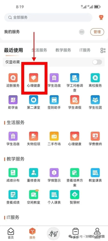 1.学生登录“华体会(中国)融合服务门户”,点击“服务”板块