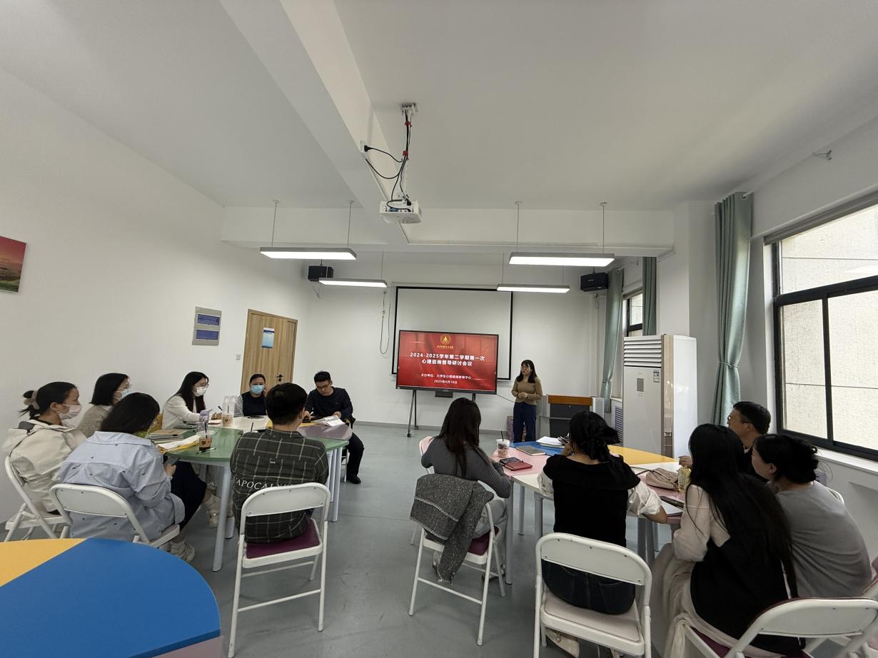 为推动心理咨询师队伍专业化建设,提升心理咨询师专业能力,4月10日中午,大学生心理健康教育中心在明心楼南203活动室召开2025年春季学期第一次心理咨询督导研讨会议。会议由专职心理咨询师曹源老师主持,专兼职心理咨询师全体参会。会议围绕工作经验分享、个案督导与技能切磋展开深度交流,为提升心理咨询服务质量注入新动能。