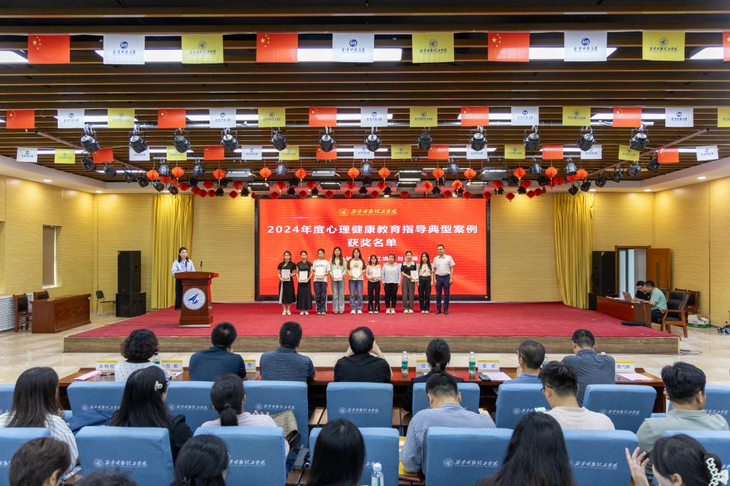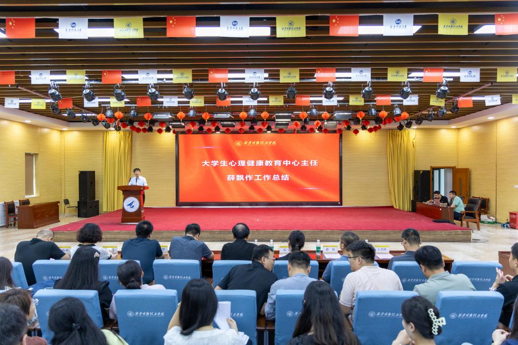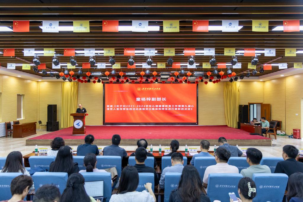 中华传统文化促进会心理工作委员会副主任、陕西省高校心理素质教育研究会会长郑林科教授,学校党委组织宣传部部长高超,党委学生工作部副部长童杨梓,质量管理与评估办公室主任张瑜,教务处副处长任华,科技处副处长雷娟,语言文化传播学院党委书记赵旭东,经济与管理学院党委书记何文举,高等职业技术学院党总支书记王庭良,马克思主义学院与通识教育学院党委书记王君涛,马克思主义学院副院长惠斌以及各学院党委(党总支)副书记,全体思政课教师,全体心理健康教育专兼职教师,全体辅导员,获奖学生参加了本次会议。会上,薛飘作工作总结。童杨梓宣读了学校《关于对2023-2024学年心理健康教育工作暨第九届心理育人宣传季实践活动表现突出集体和师生进行表彰的决定》。向在2023-2024学年心理健康教育工作及第九届心理育人宣传季实践活动中表现突出的集体和师生进行了表彰。
